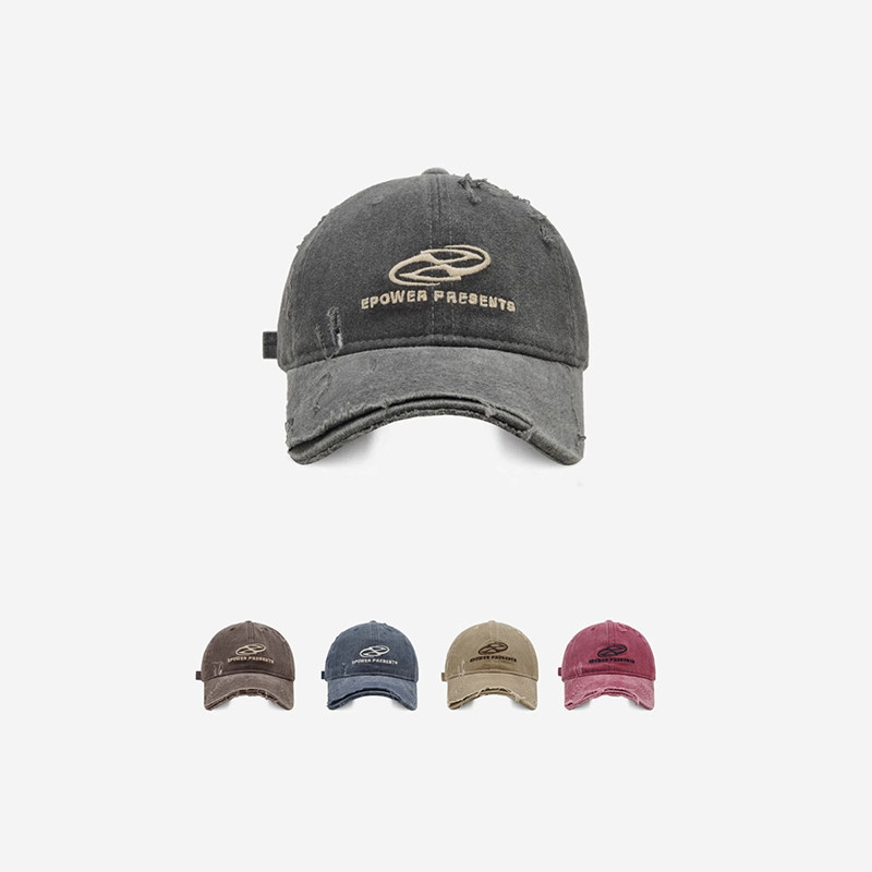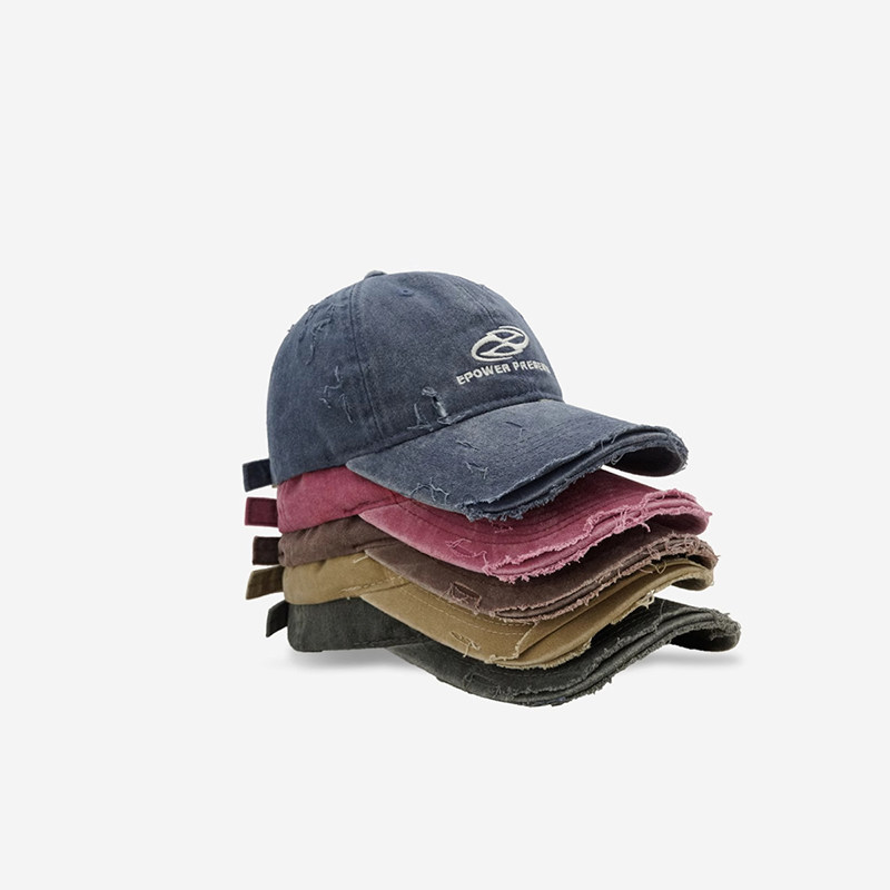 Classy key新加坡设计师联名款做旧破洞牛仔布棒球帽刺绣鸭舌帽子