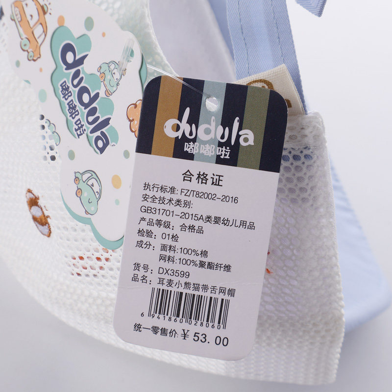 嘟嘟啦夏季男女宝宝帽子儿童鸭舌帽可爱卡通熊猫透气外出遮阳凉帽