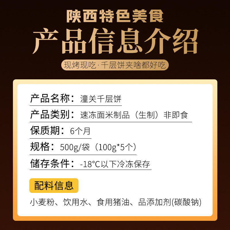 陕西正宗美食潼关千层饼早餐肉夹馍饼胚100g*5片/袋冷链速食原味