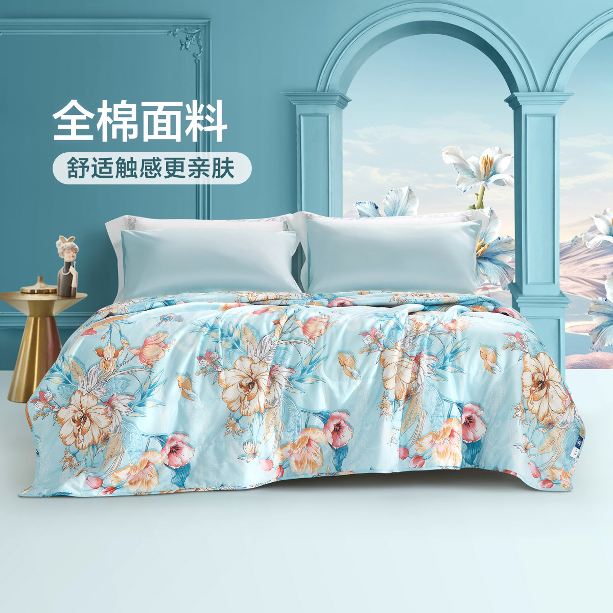 富安娜夏被100%纯棉面料七孔抑菌夏凉被可水洗空调被吸湿透气被芯