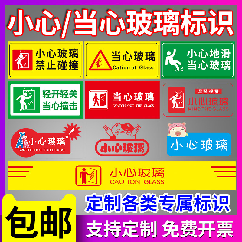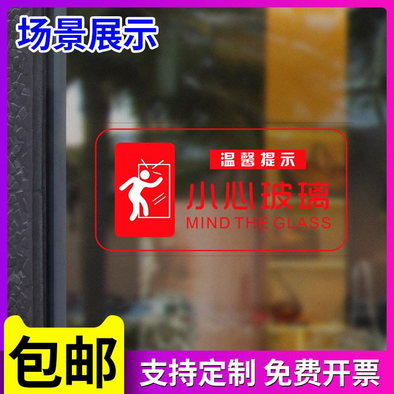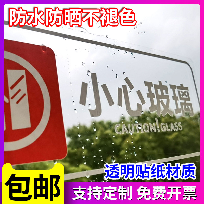 小心玻璃透明贴轻开轻关玻璃门温馨提示防撞透明标贴当心玻璃腰线商场橱窗提示贴纸禁止攀爬倚靠醒目标志定制