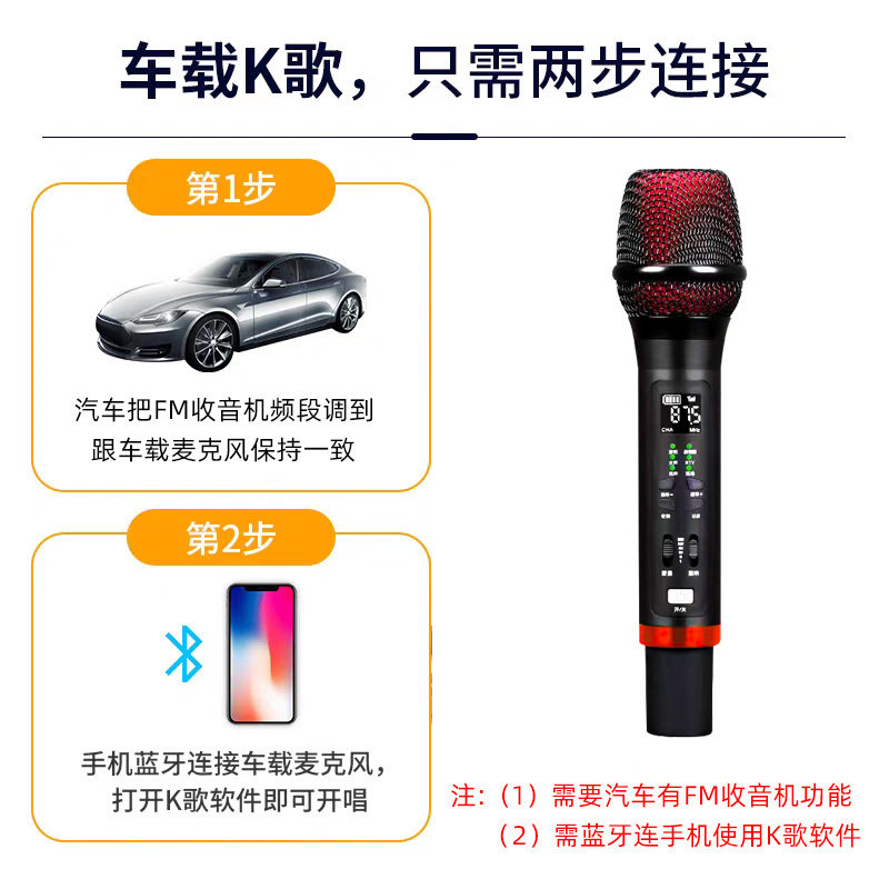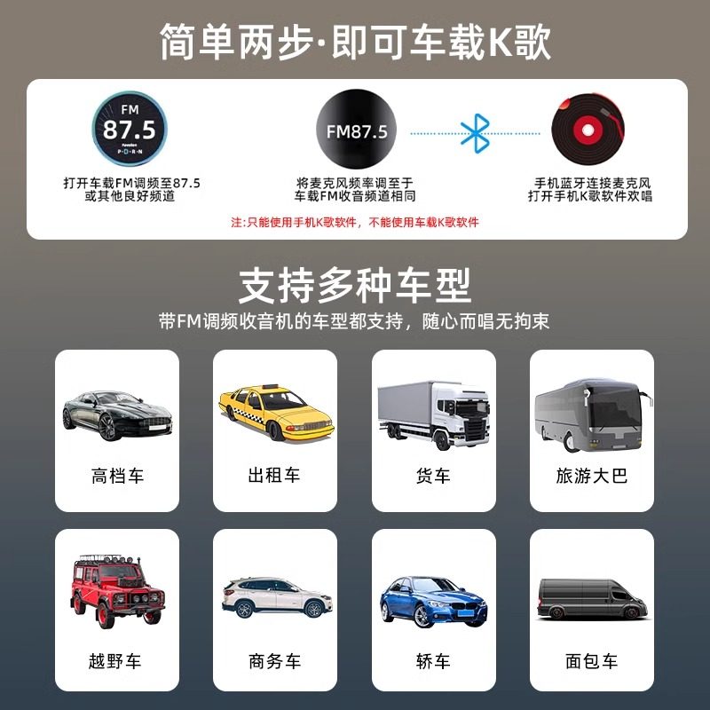 无线车载麦克风k歌话筒汽车通用车内专用全民唱歌KTV蓝牙FM卡拉OK