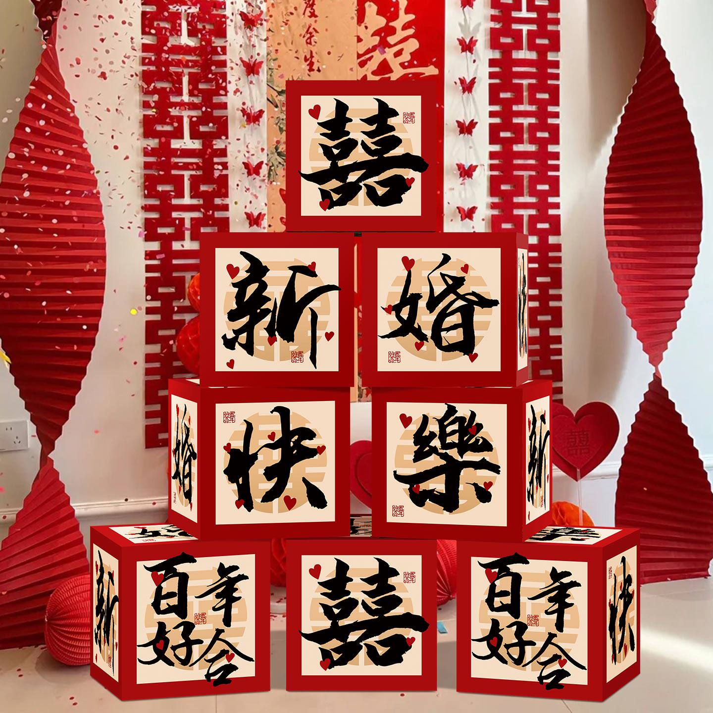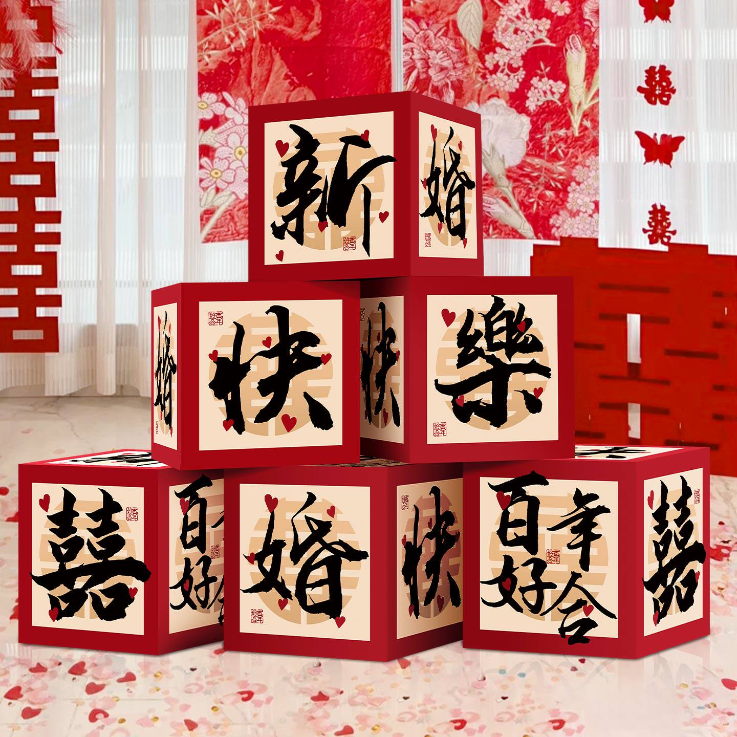 婚房布置结婚立体喜字盒子婚礼新房落地摆件女方拍照堆堆客厅新婚