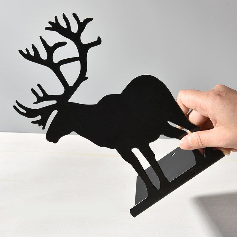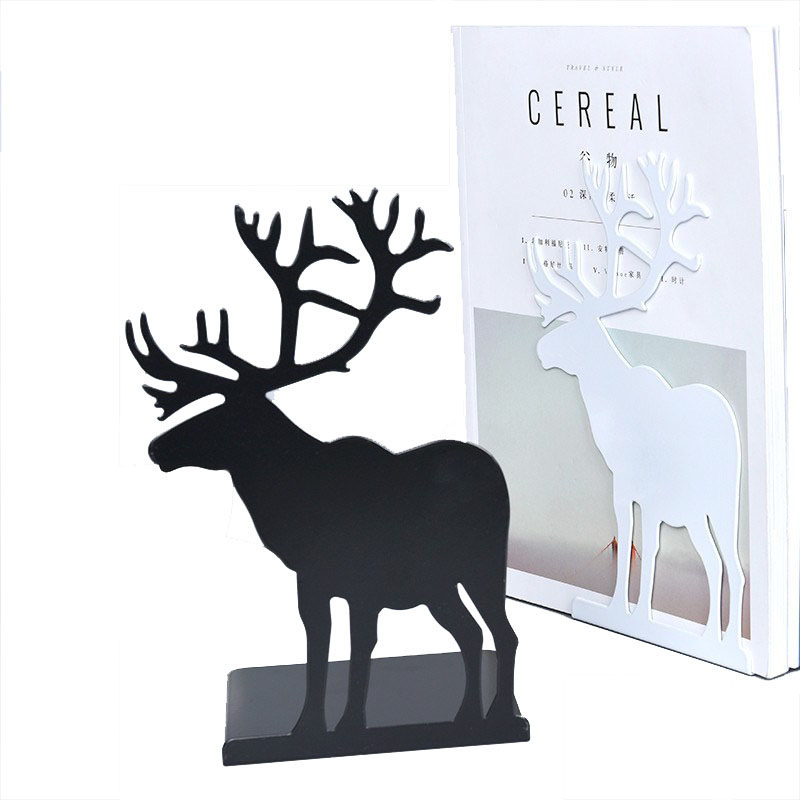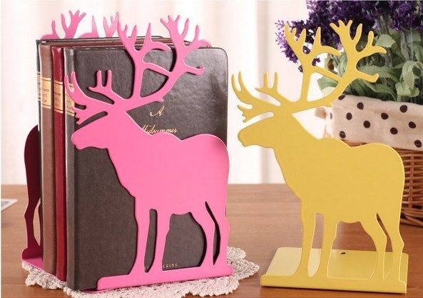 包邮韩国文具创意复古麋鹿驯鹿造型金属铁书立书挡书靠书架一对价