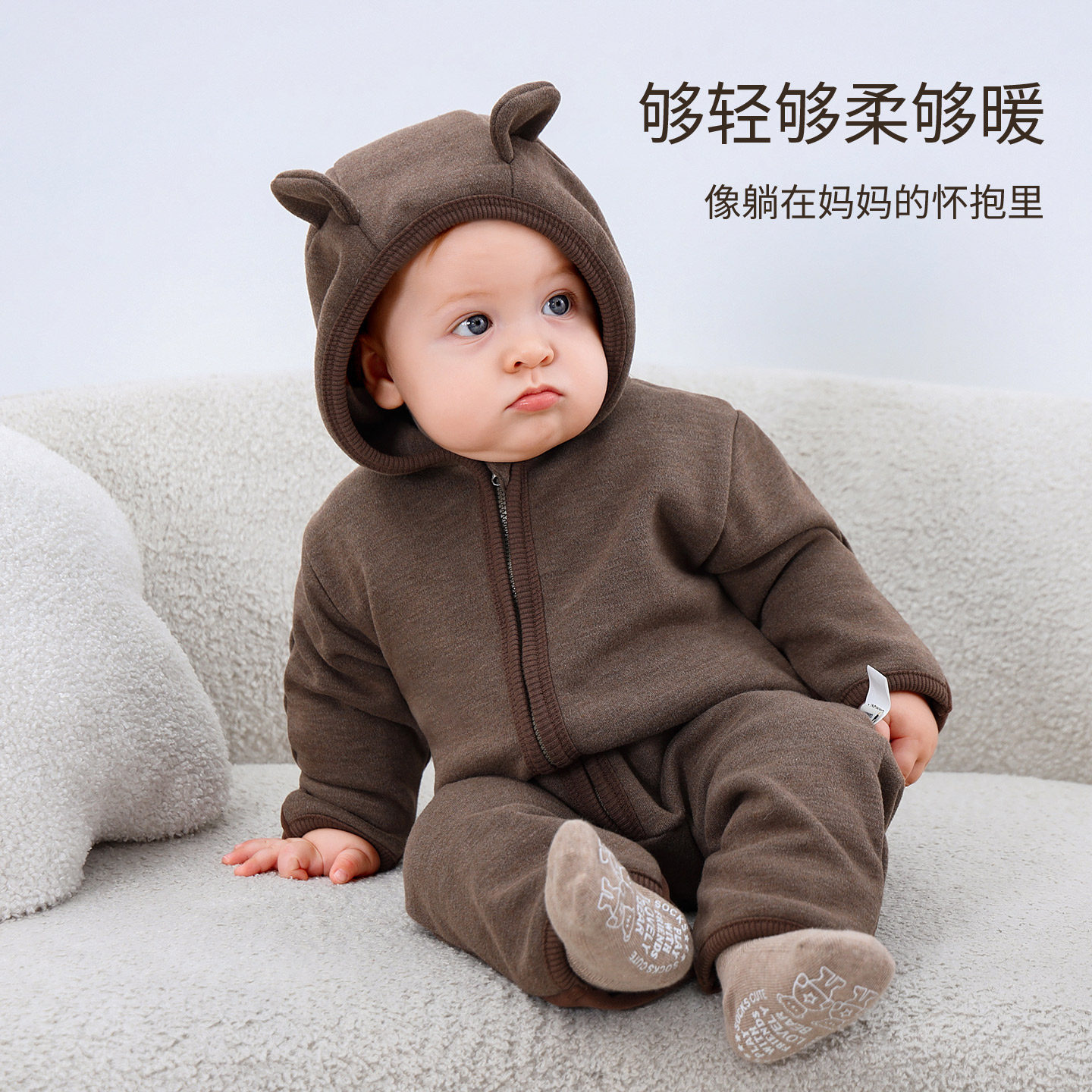 Oak mont婴儿连体衣秋冬羊毛尼加绒保暖新生儿衣服宝宝连帽外出服