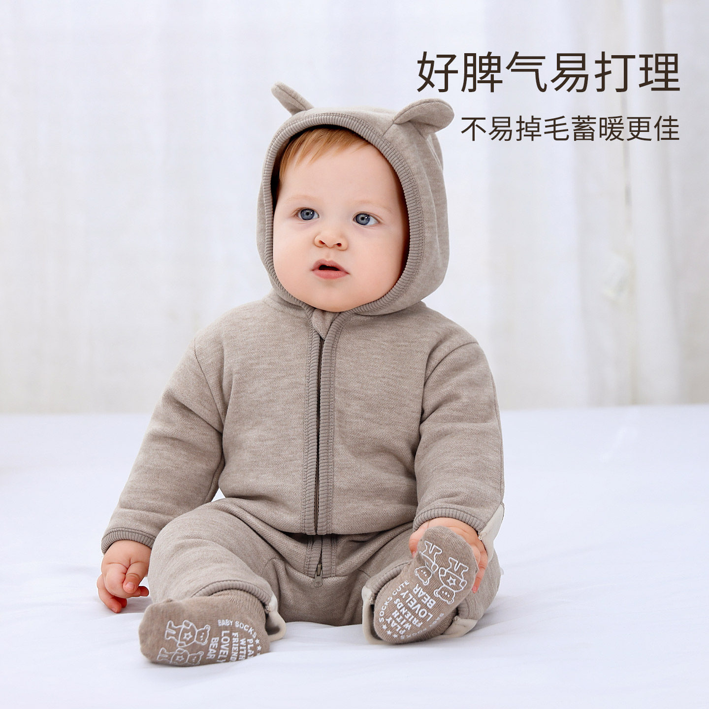 贝肽斯德绒婴儿连体衣秋冬装新生婴幼儿男女宝宝衣服打底保暖睡衣