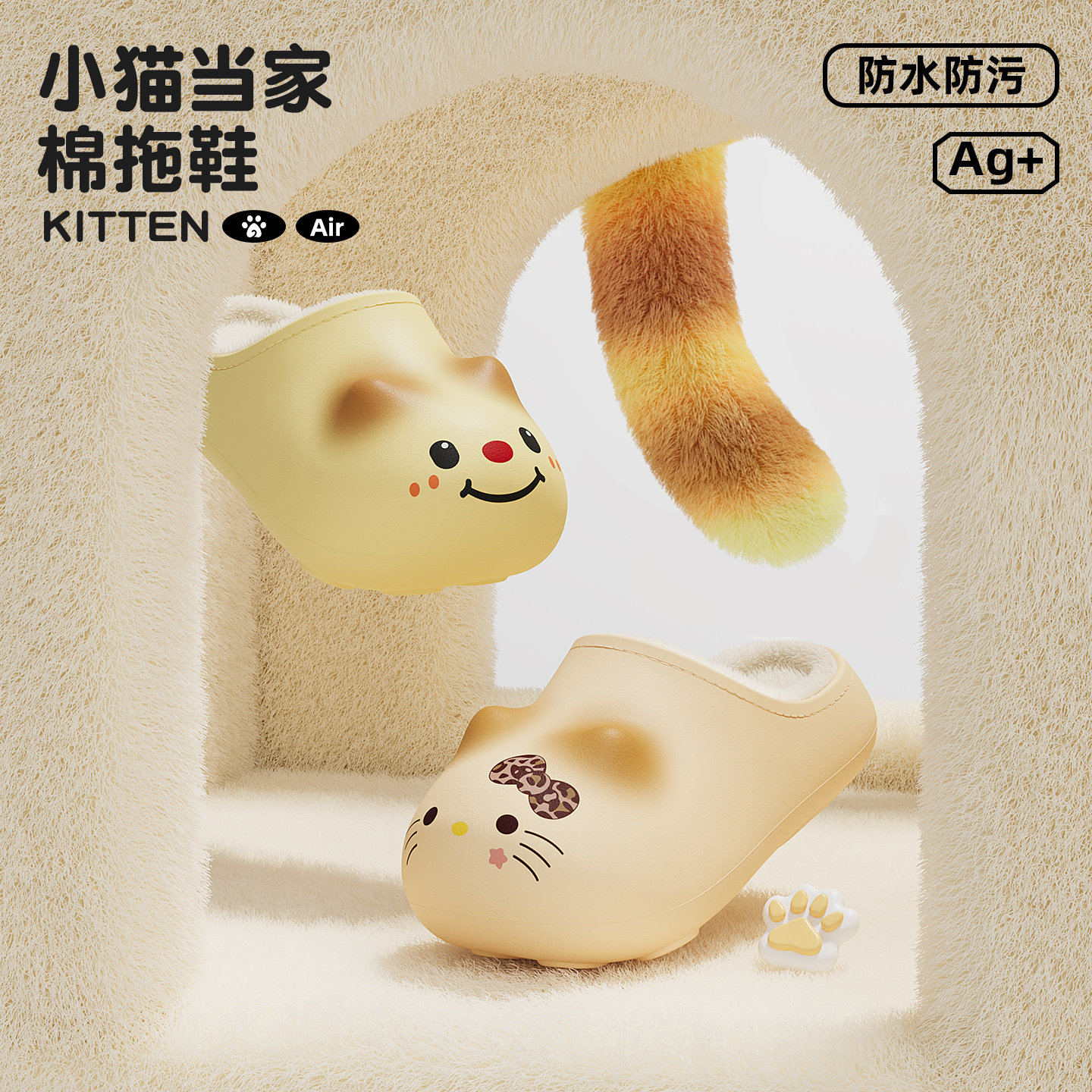 红豆卡通儿童棉拖鞋女款冬季2025新款室内家居防水防滑保暖拖鞋男