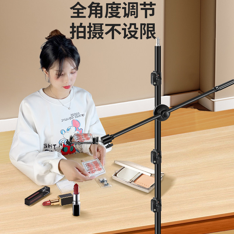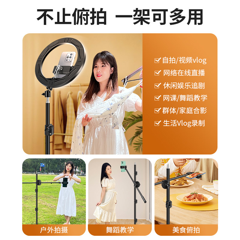 俯拍手机支架主播直播专用三脚架拍摄视频补光灯网红对镜服装拍照落地式多功能横臂杆通用支撑架子2025新款