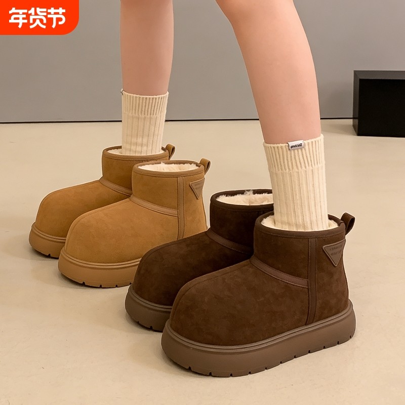 保暖厚底雪地靴女款2025新款冬季加绒加厚大头短靴子东北棉鞋防水
