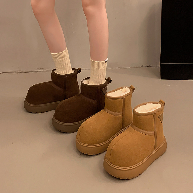 miu家~侧拉链雪地靴女冬季加绒加厚保暖棉靴厚底增高真皮短筒靴子