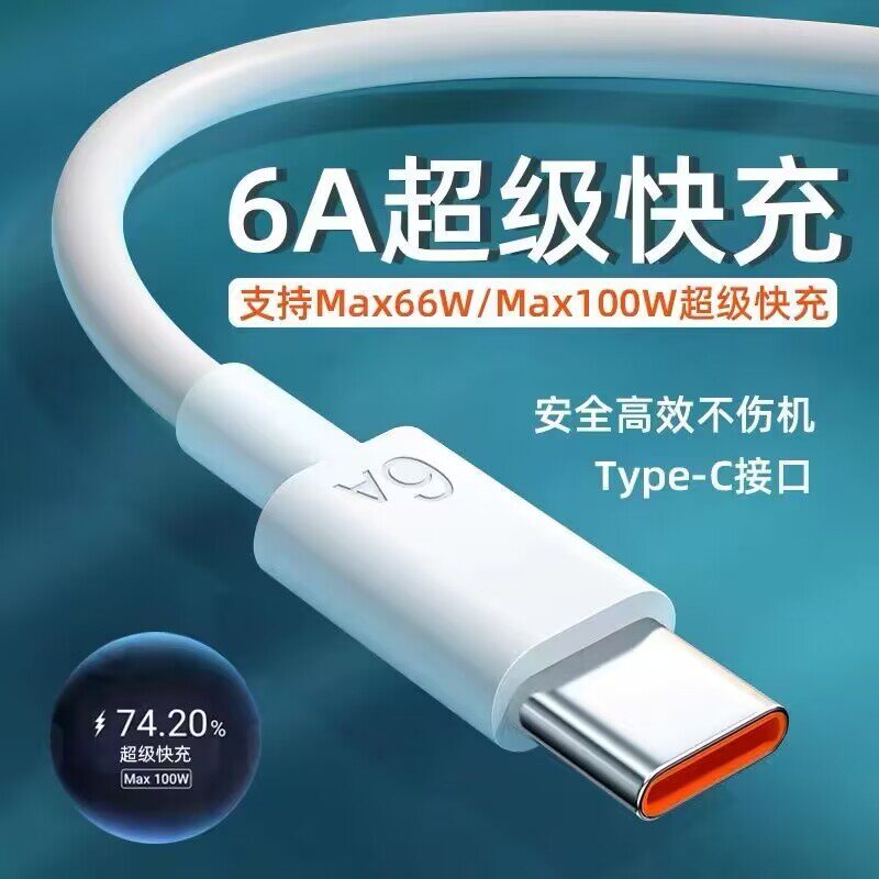 适用华为nova13Pro/12/11Pro/10/9/8/7超级快充6A扁圆TypeC充电线