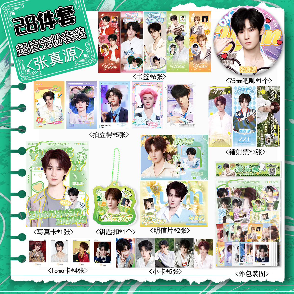 张真源周边宠粉福利84件套装镭射票吧唧拍立得小卡摩天轮写真书签