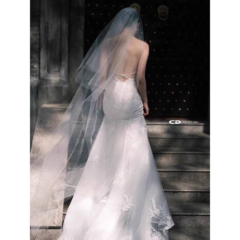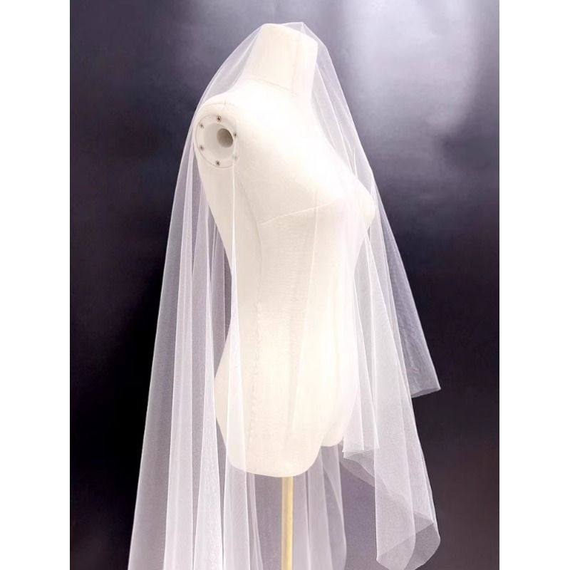 清透薄韩国水晶纱素纱裸纱头纱硬纱新娘旅拍跟妆拍照造型搭配头饰