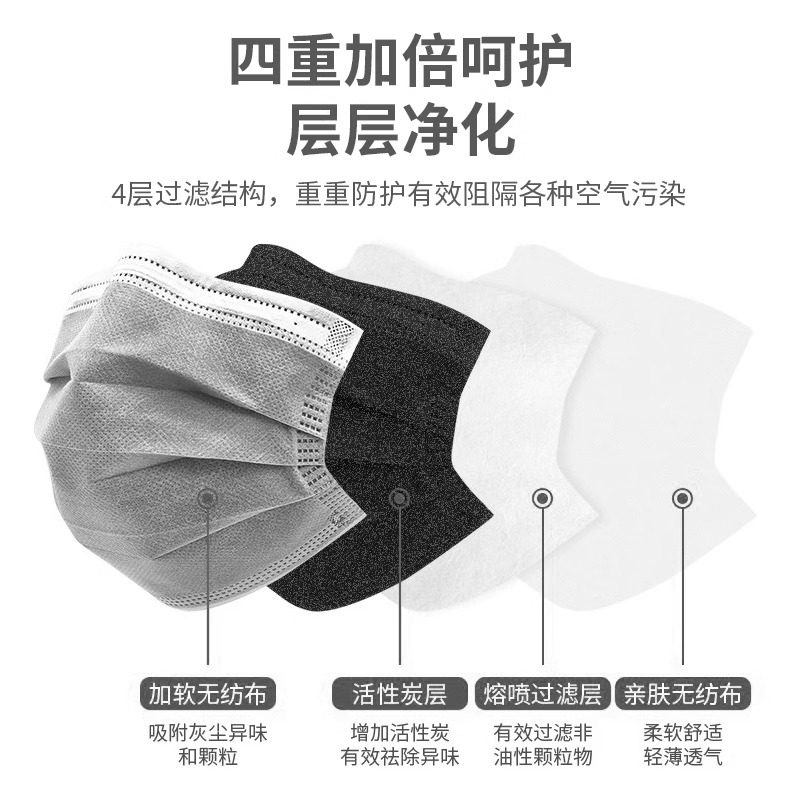 活性炭口罩一次性加厚灰色四层过滤防灰尘防工业粉尘甲醛电焊异味