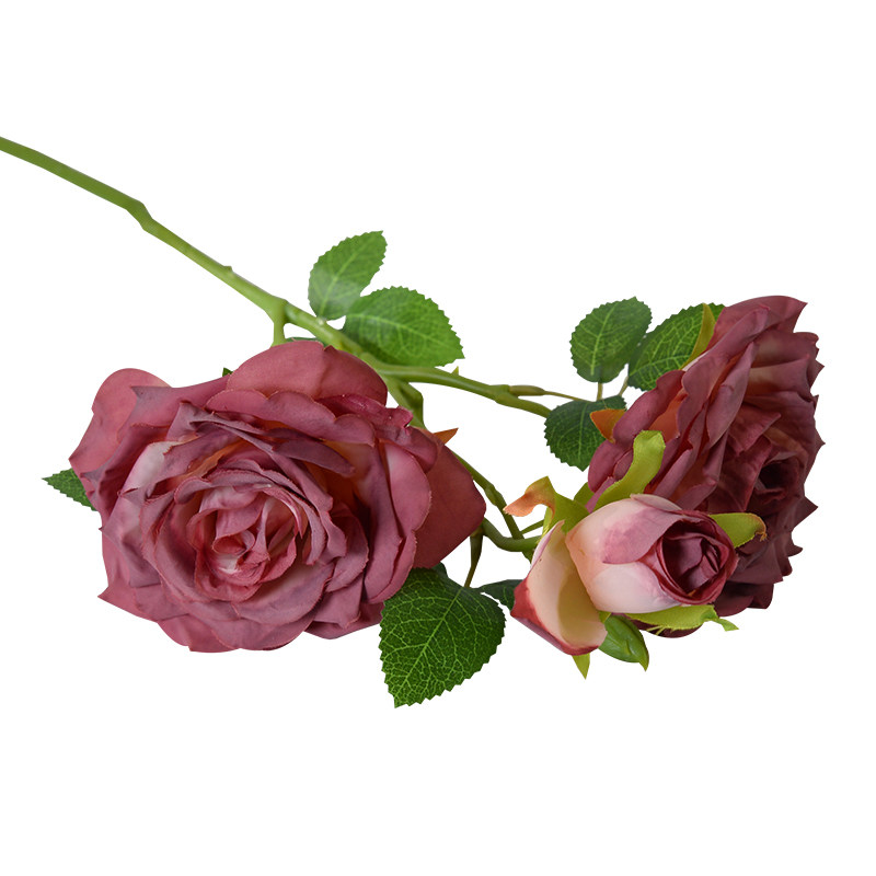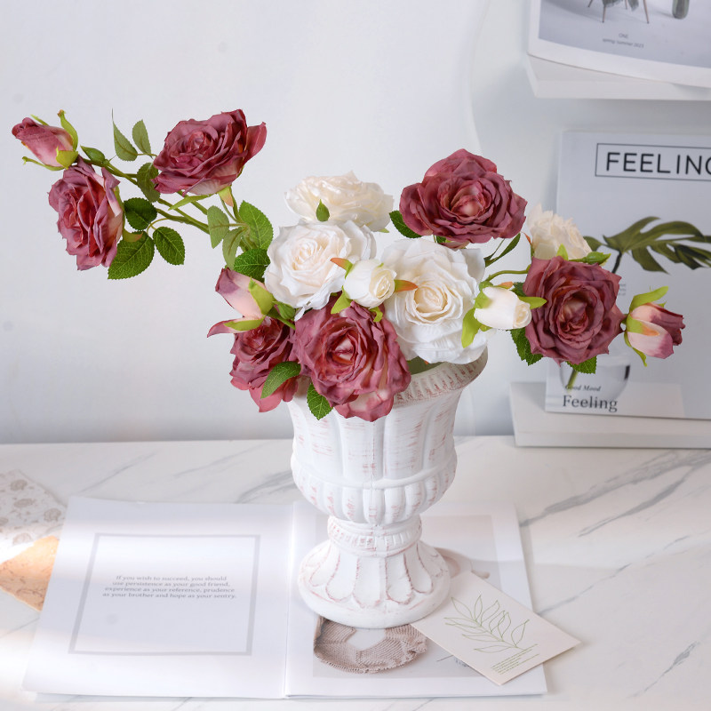 法式焦边玫瑰花假花复古客厅餐桌仿真花装饰摆件绢花插花摆设摆放