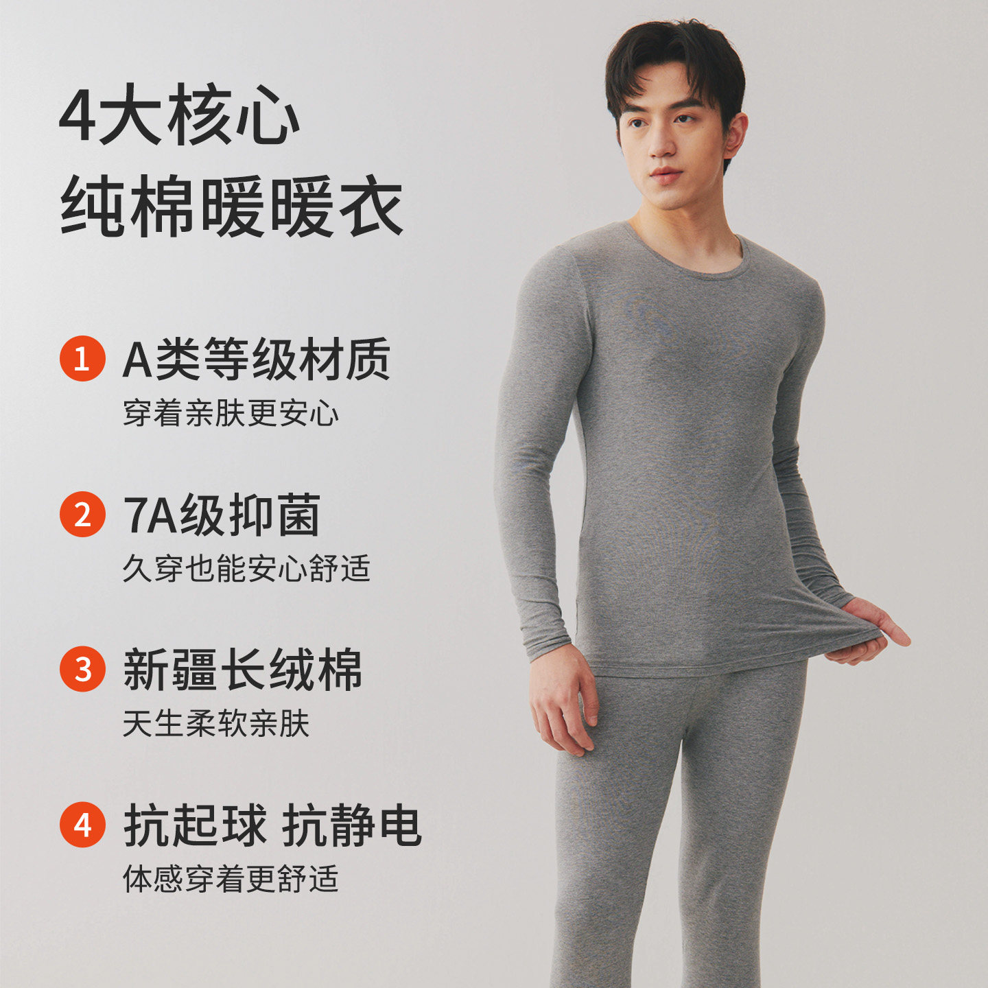 纯棉秋衣秋裤套装男士薄款全棉毛衫打底内穿发热保暖内衣男款冬季