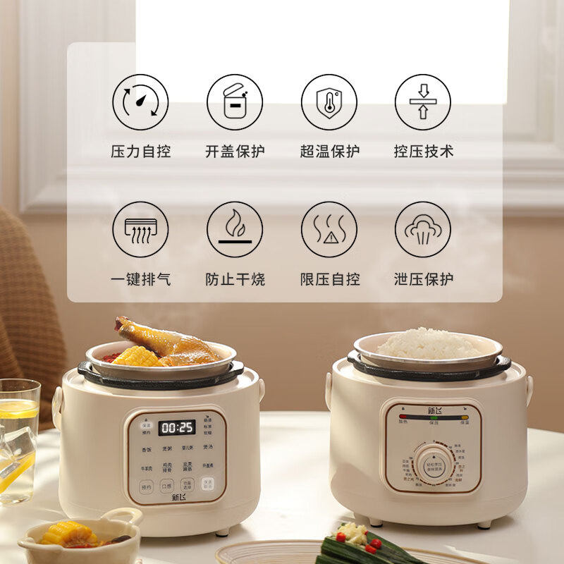 新飞电压力锅1-2家用电饭煲压力锅电煮锅迷你高压不锈钢内胆煮饭