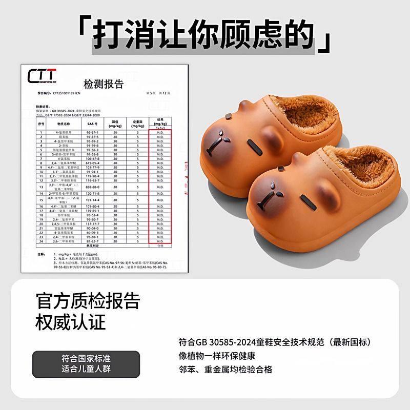 卡皮巴拉儿童棉拖鞋男童男孩毛拖鞋防水室内男宝宝棉拖冬毛绒过冬