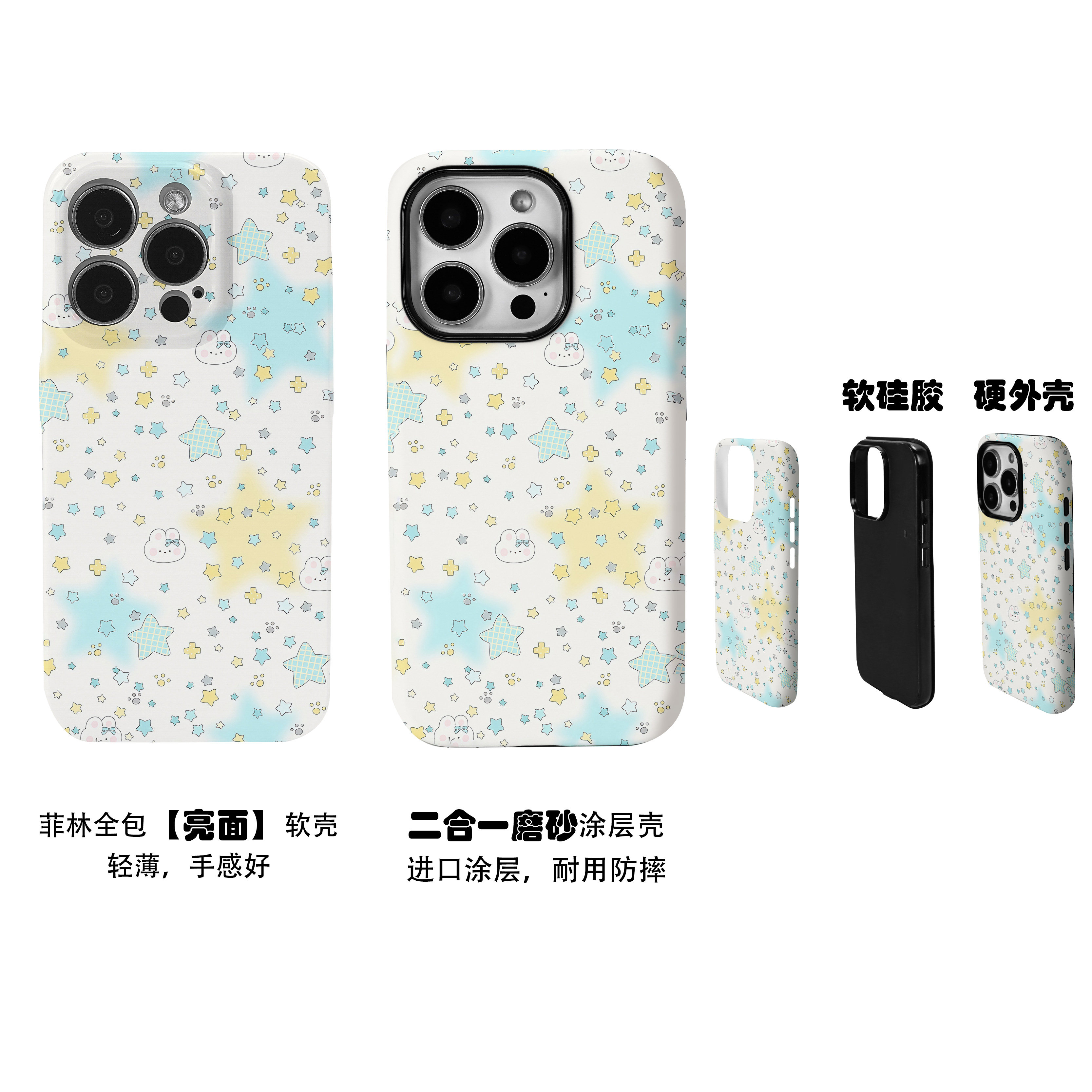 可爱简笔画兔兔满天星菲林二合一手机壳适用苹果17nova14华为p70mate60小米15opporeno14vivo荣耀300iPhone16
