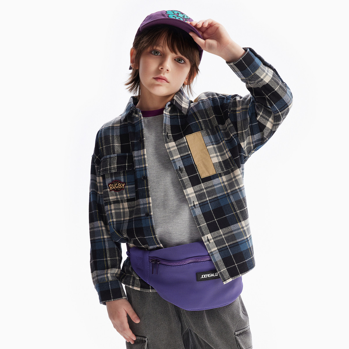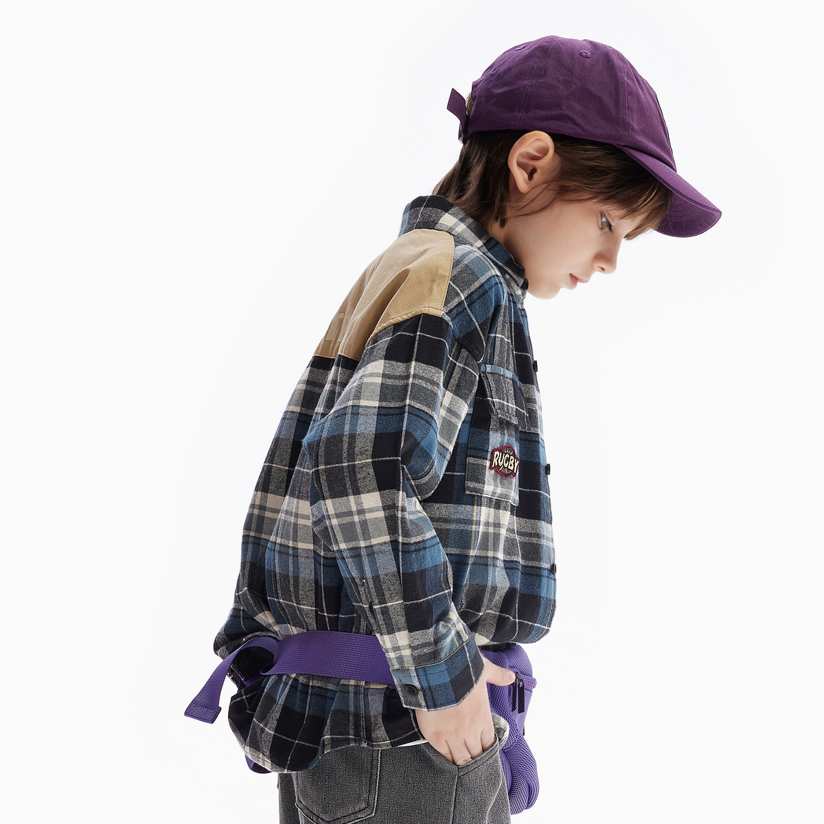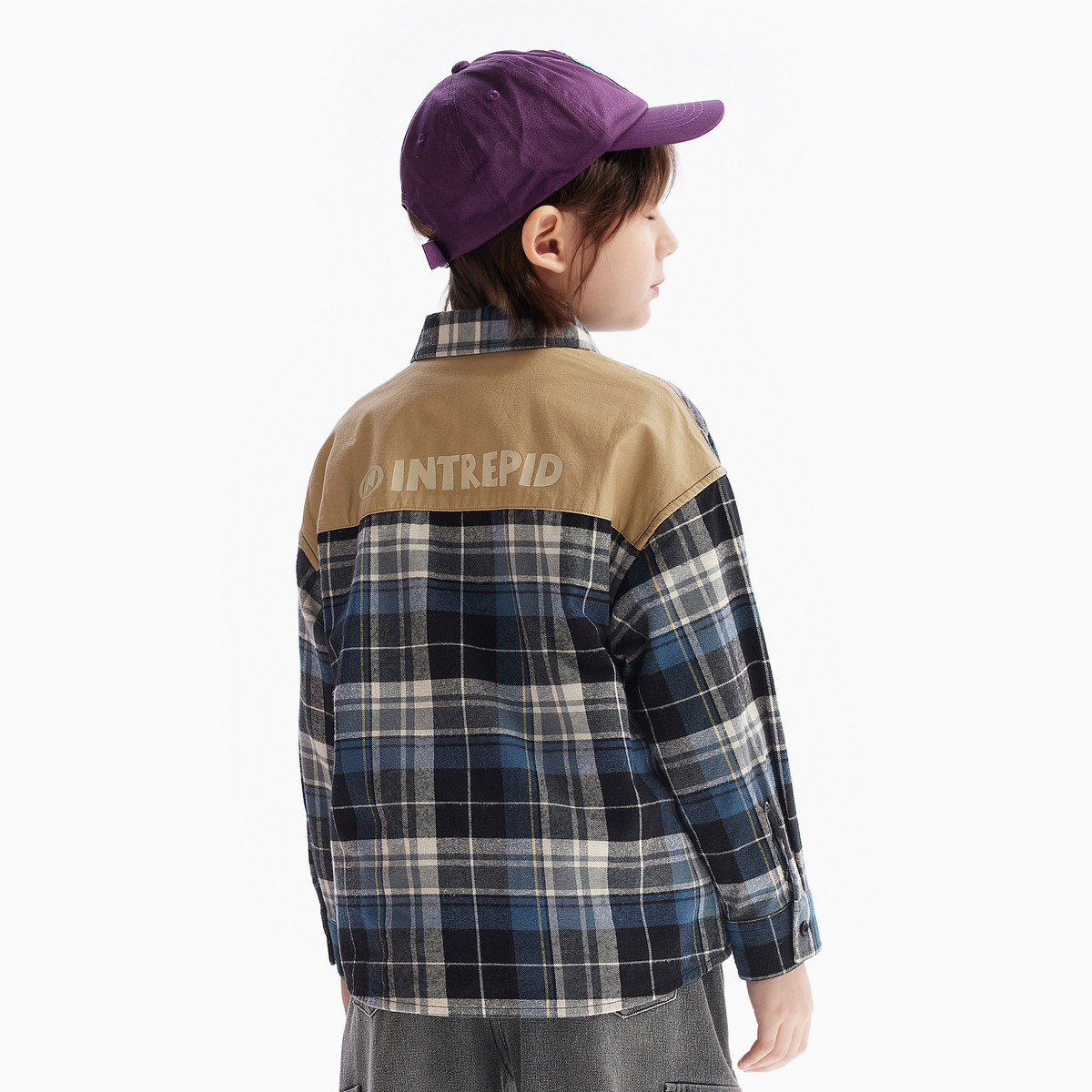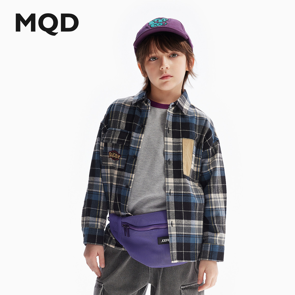 MQD童装男童衬衫夹棉2025秋冬新款儿童学院格子衬衣拼接加厚外套