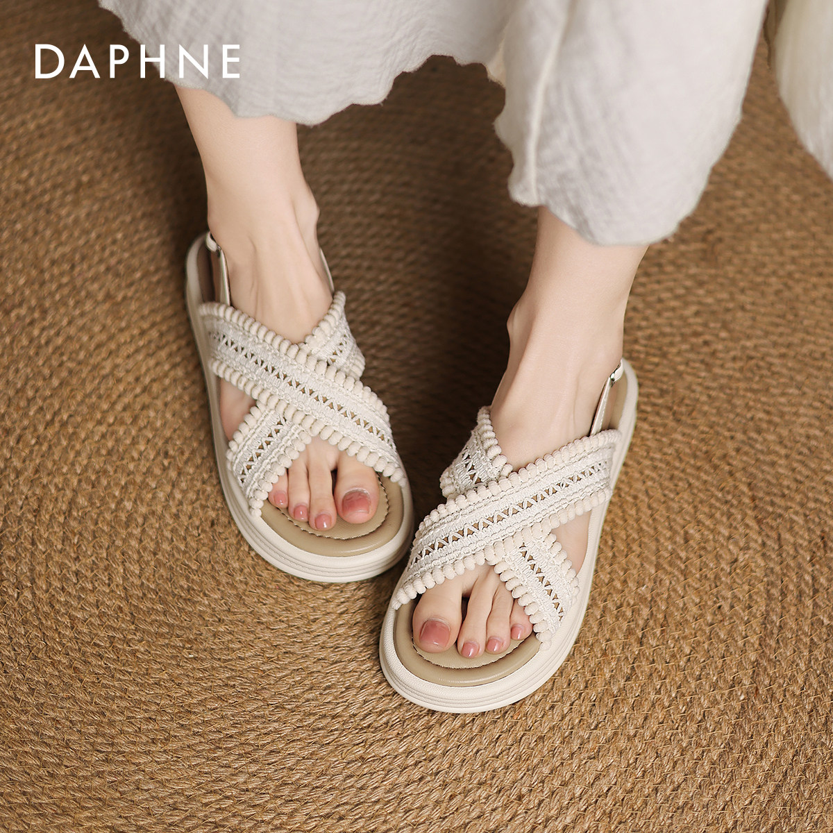 达芙妮波西米亚凉鞋女款夏季平底外穿2026新款厚底法式罗马凉拖鞋