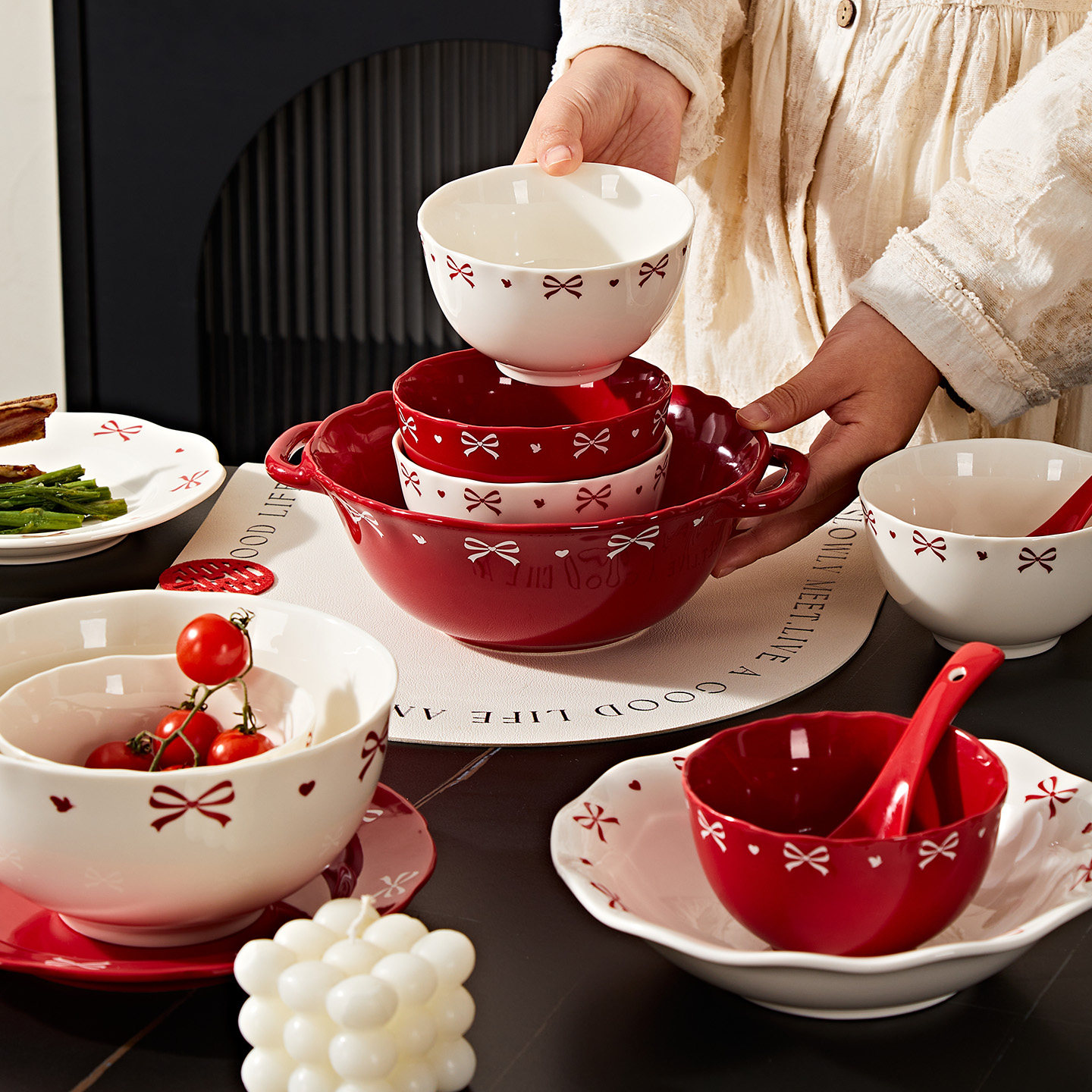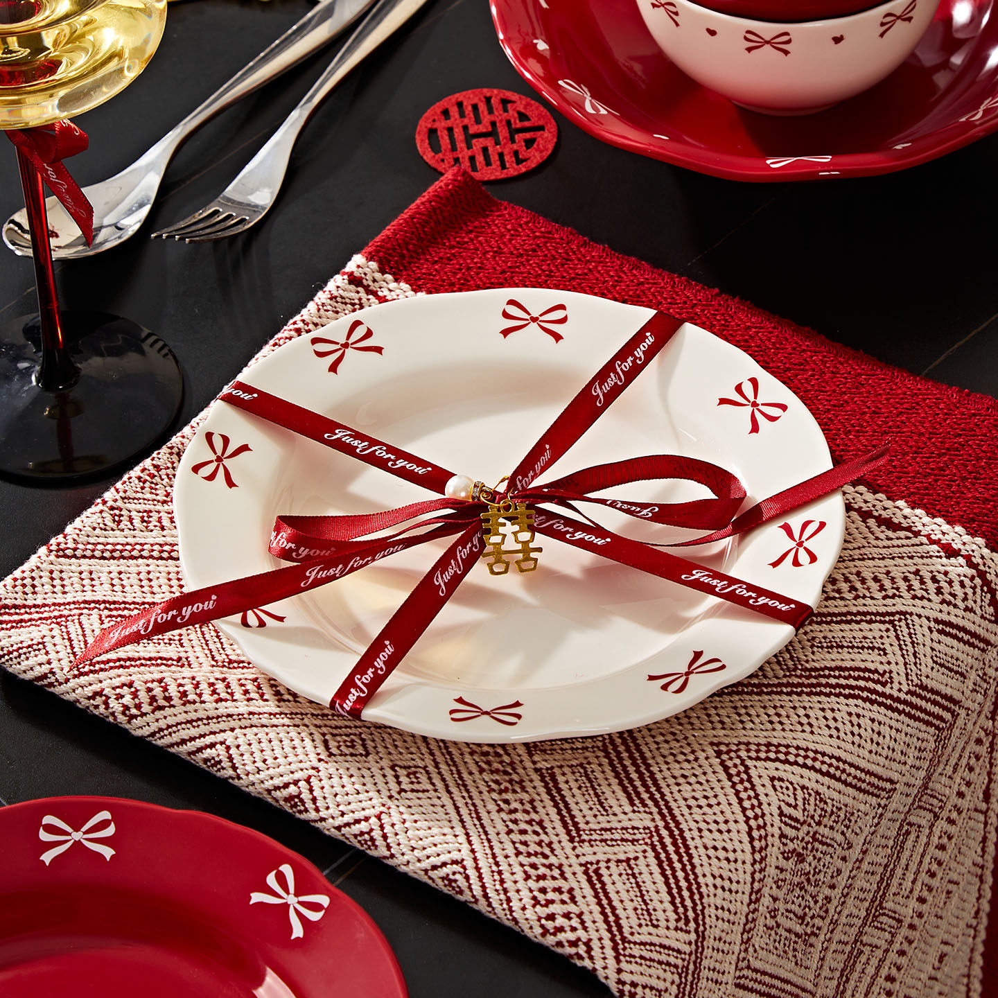 高档碗碟餐具陶瓷新婚礼物送新娘红色碗盘筷套装乔迁新居结婚礼盒