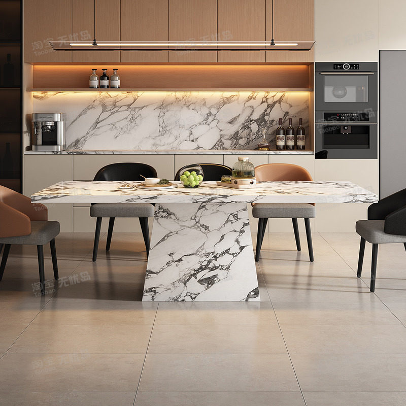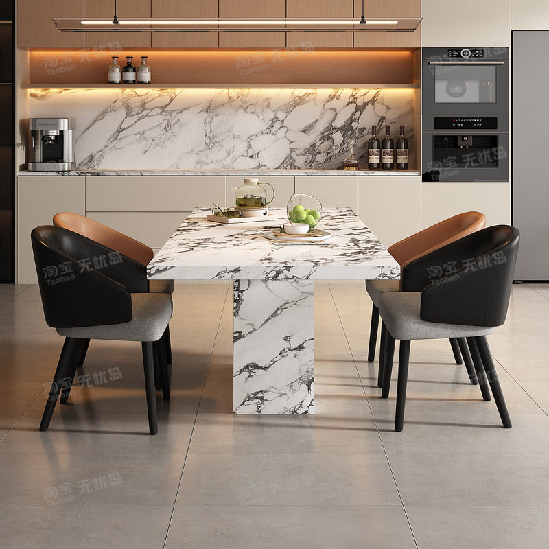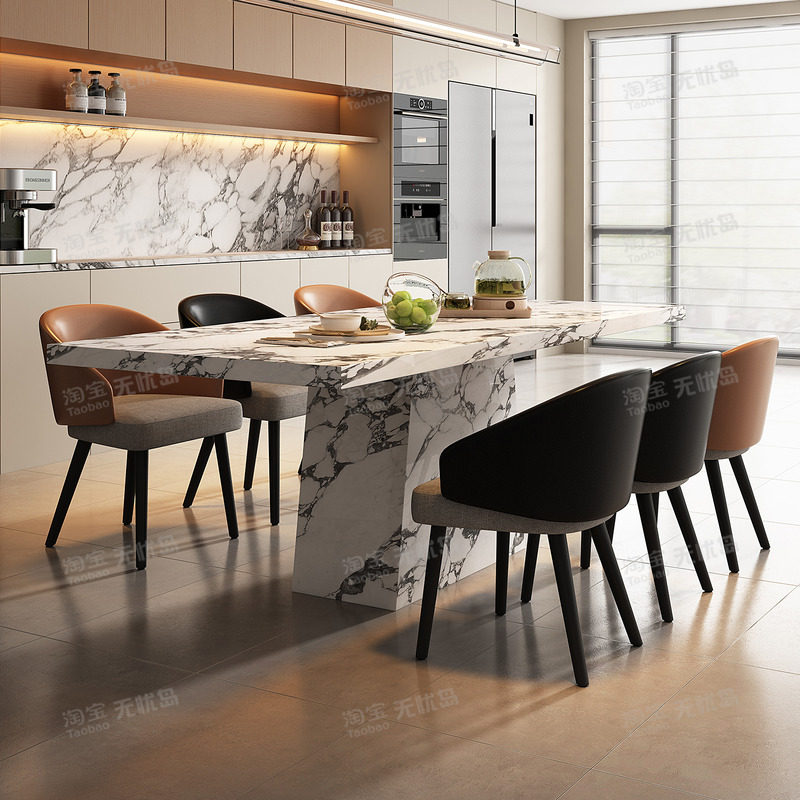 现代简约轻法式宝格丽餐桌全岩板小户型设计师高级长方形餐桌组合