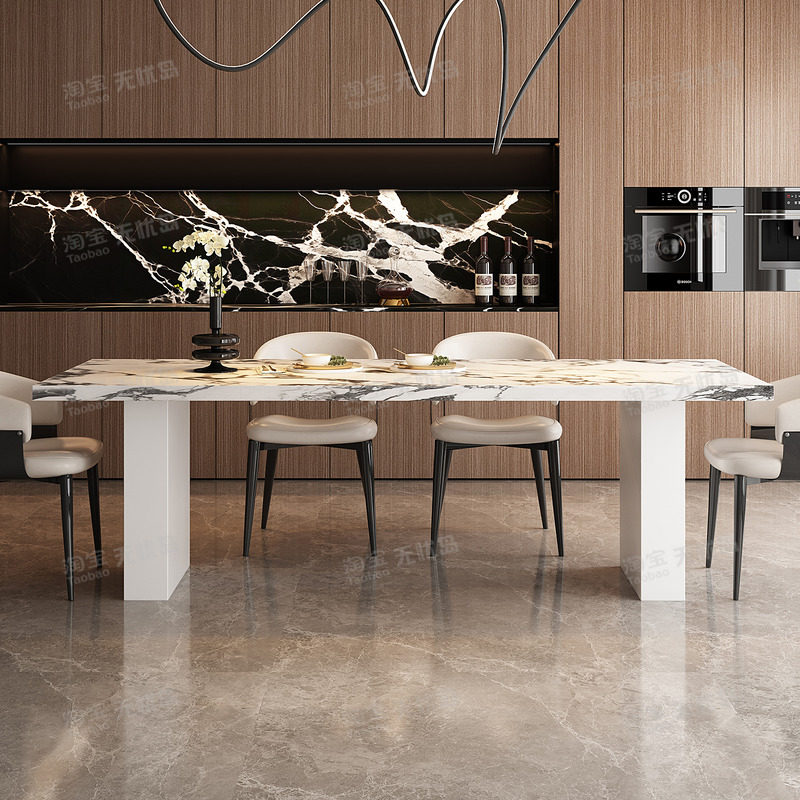 2026新款全岩板餐桌家用轻奢高级感长方形饭桌子意式极简岩板餐桌