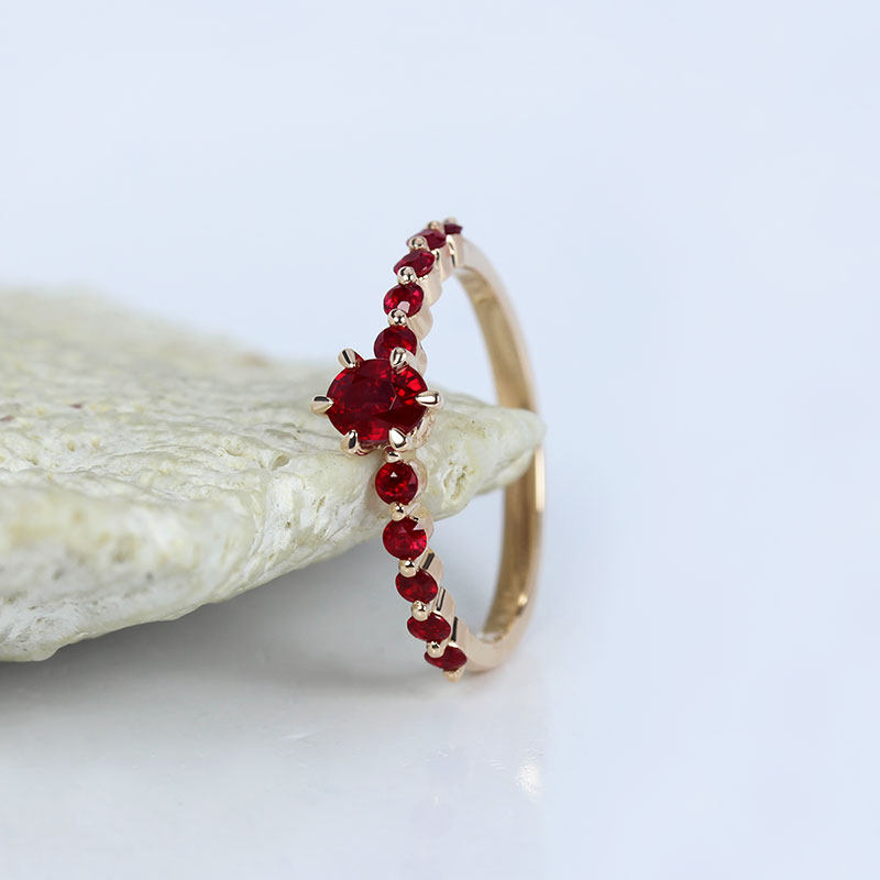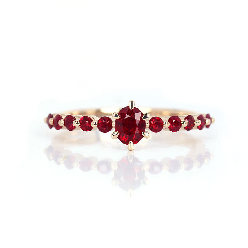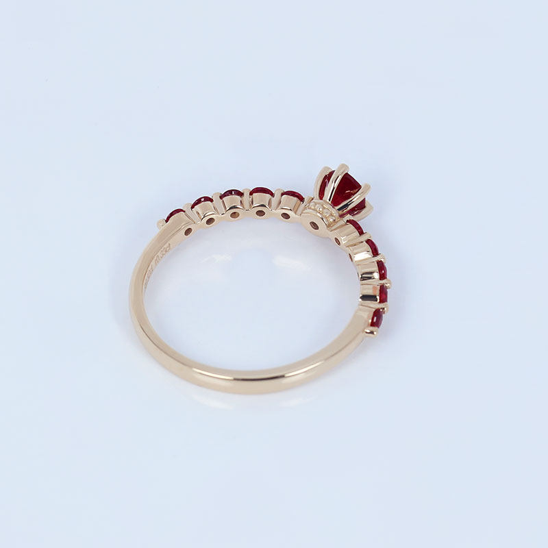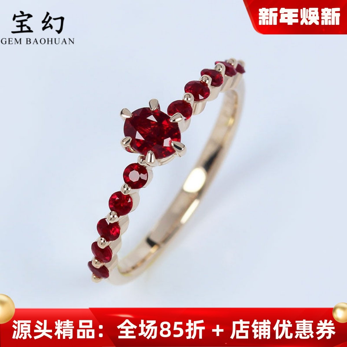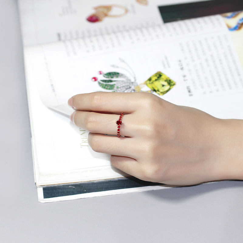 天然鸽血红宝石六爪小公主戒指 18K彩金正红排戒尾戒修手显白女款