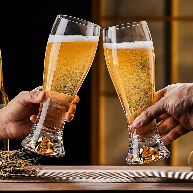 高级感金箔精酿啤酒杯水晶玻璃大号扎啤杯创意家用聚会大容量酒杯
