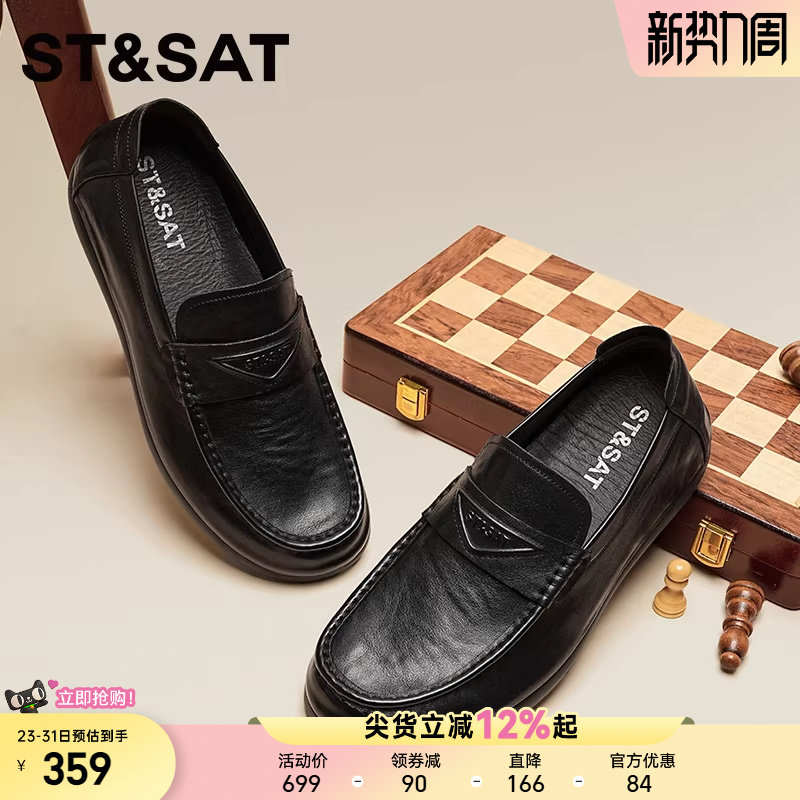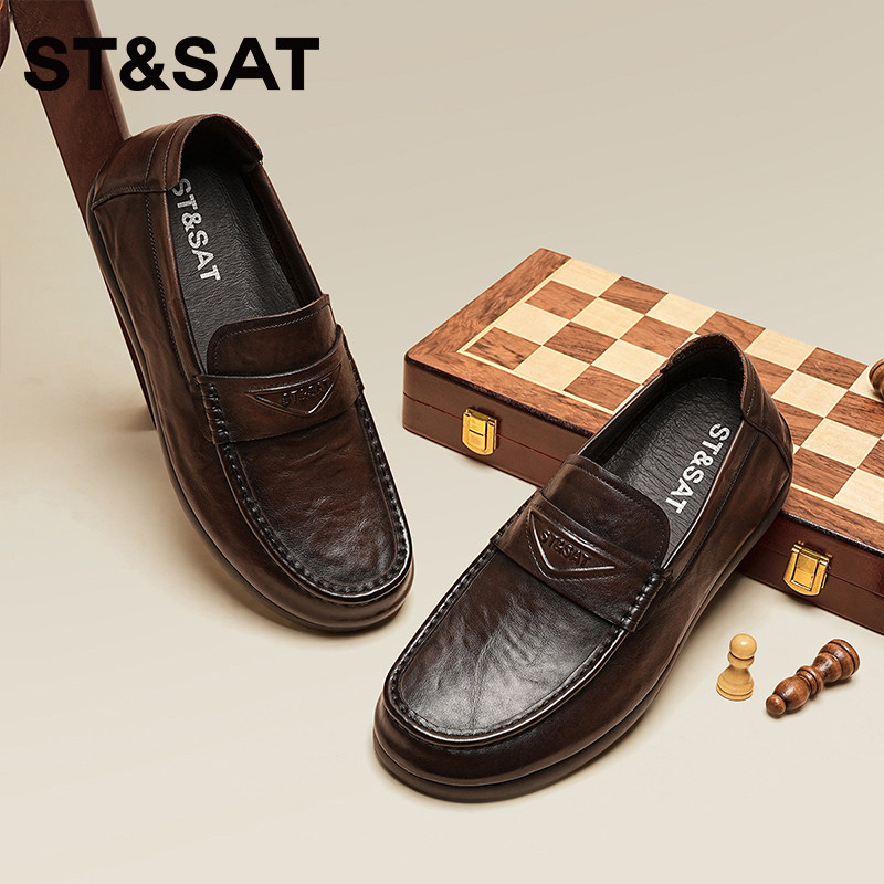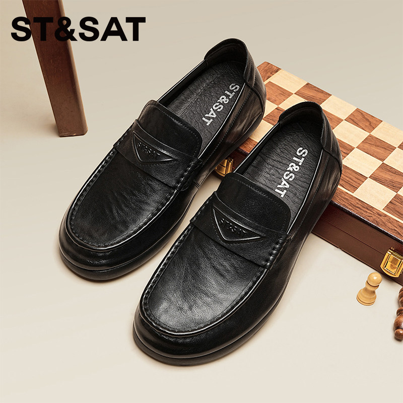 星期六新款商务风真皮乐福鞋男一脚蹬休闲百搭软底黑色男鞋豆豆鞋
