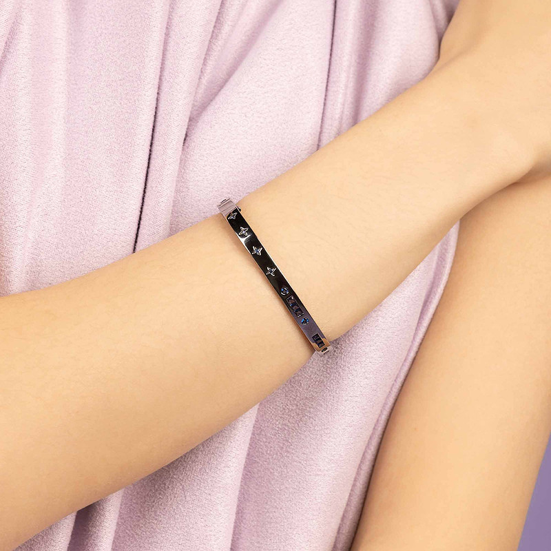APM Monaco海蓝色摩斯密码银手镯轻奢个性独特手饰送人生日礼物