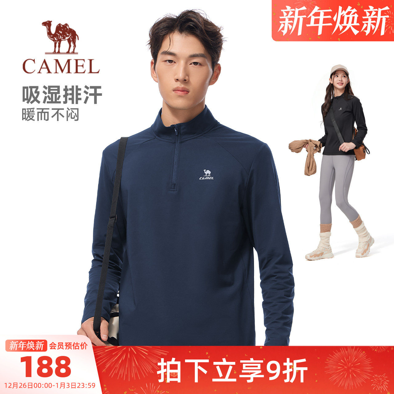 骆驼运动立领长袖T恤薄绒速干衣男款女款秋季瑜伽服跑步上衣