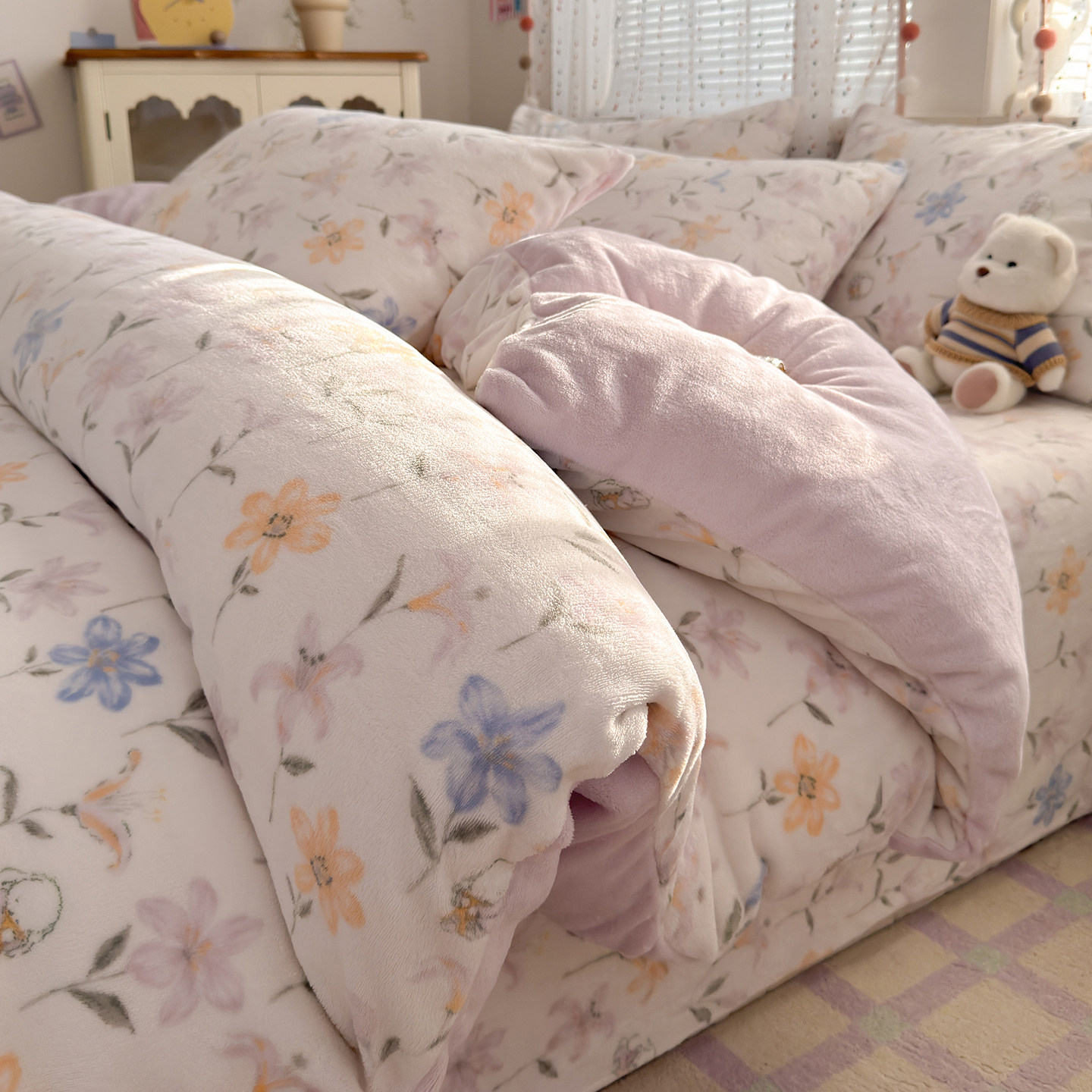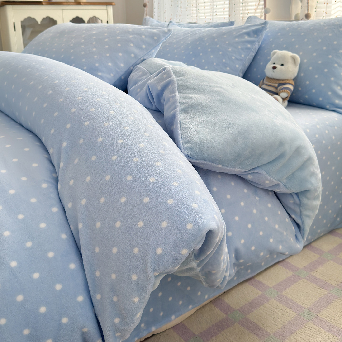 秋冬季加厚四件套牛奶绒被套床单双面加绒被罩床笠学生宿舍三件套