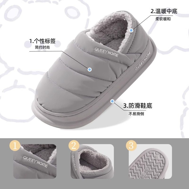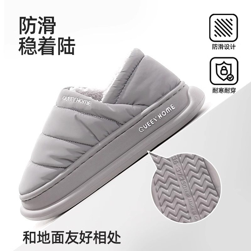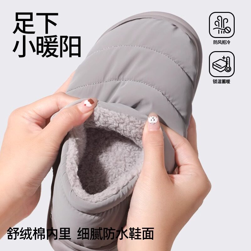朴西棉拖鞋女士秋冬季厚底简约保暖室内居家用软底防滑情侣棉拖男