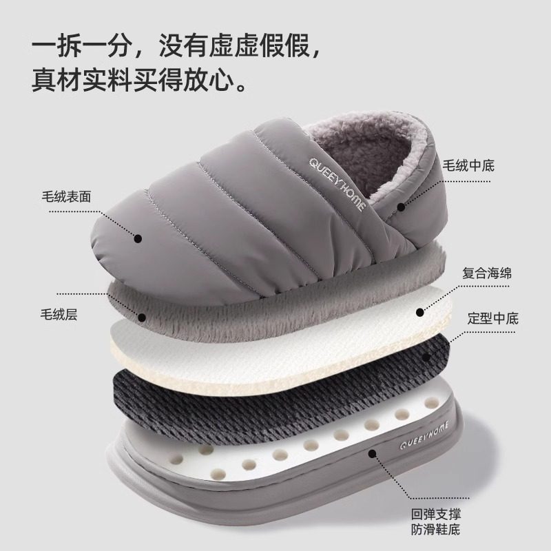 亚束棉拖鞋男士破茧外穿厚底增高情侣大码室内居家冬季保暖女新款