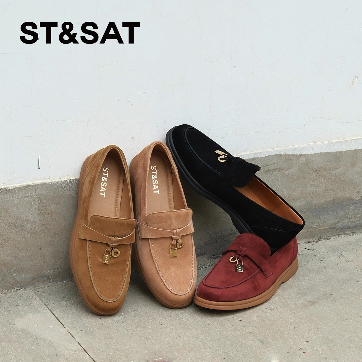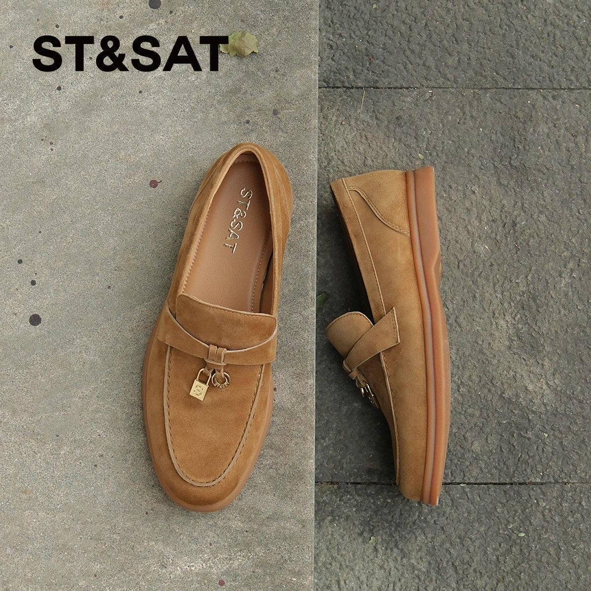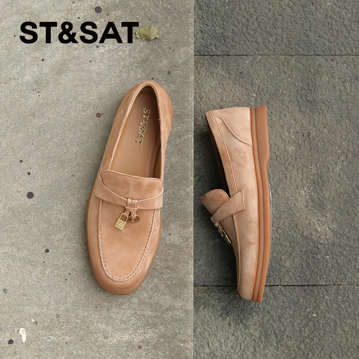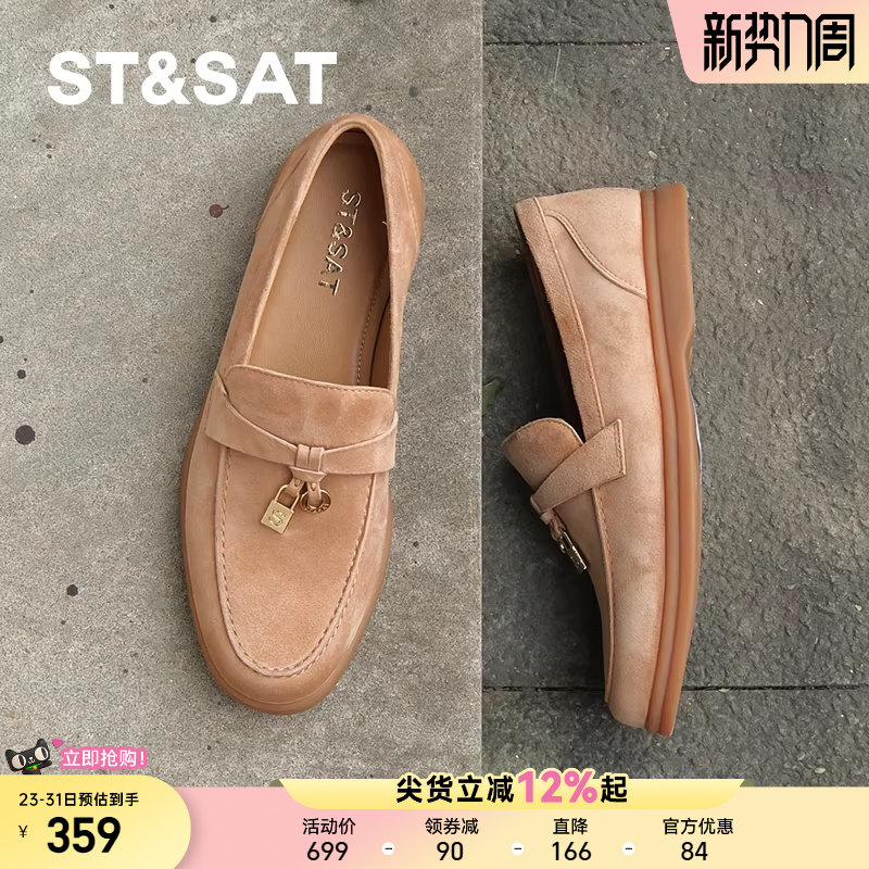 星期六真皮牛皮乐福鞋女鞋2025新款一脚蹬软底软面厚底英伦小皮鞋