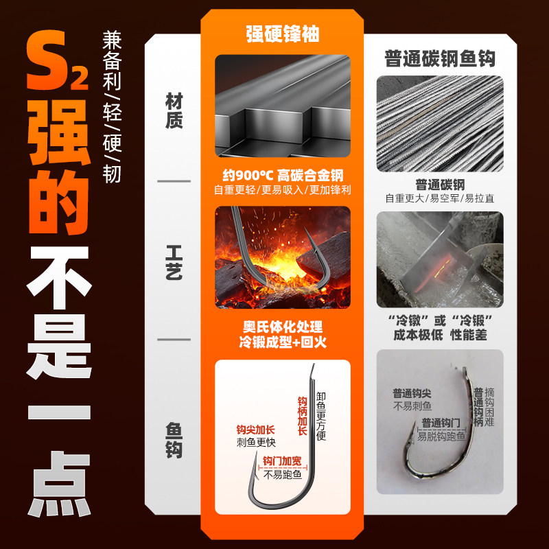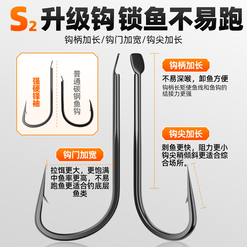 正品强硬锋袖散装鲫鱼钩溪流钩细条钩金海夕鱼钩散钩平打竞技手绑