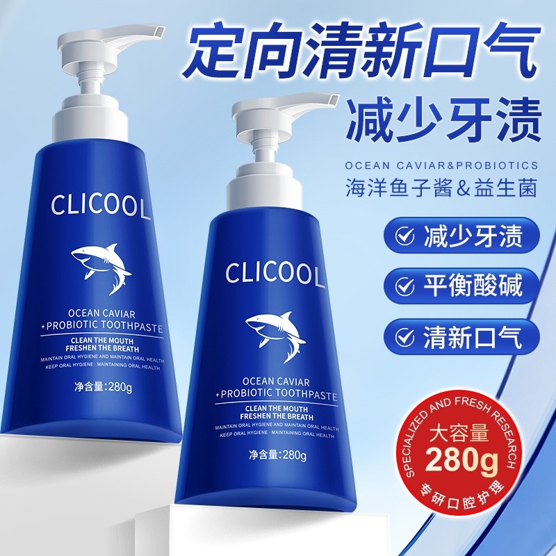 抖音同款海洋鱼子酱按压式益生菌牙膏去牙渍清新口气亮白护清新