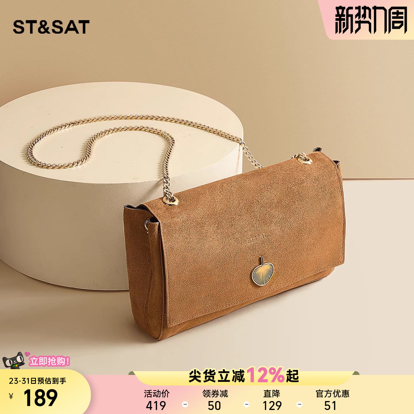 星期六双面背信封包包女士2025秋冬斜挎包复古时尚质感小方包链条