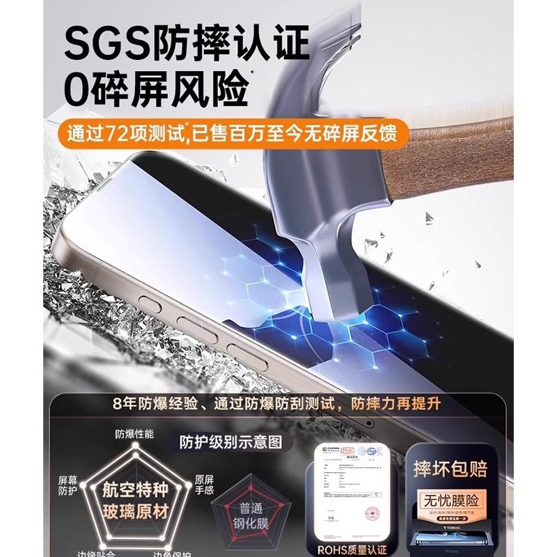 【无色光学护眼膜】适用苹果16promax钢化膜ihone15/14pro手机膜13新款防蓝光12无尘仓贴膜plus防摔11高清