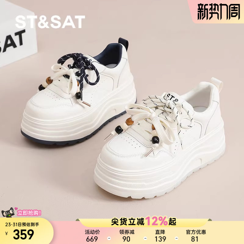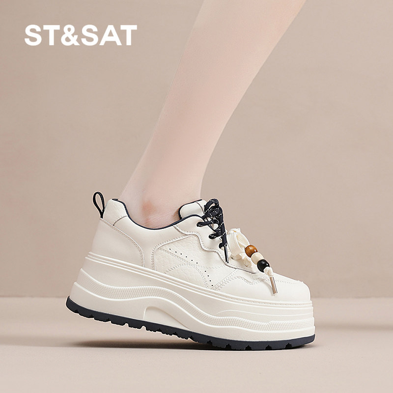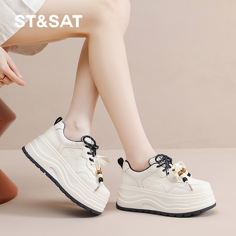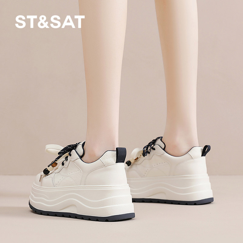 星期六厚底小白鞋子女2025新款秋季百搭增高休闲板鞋运动面包松糕