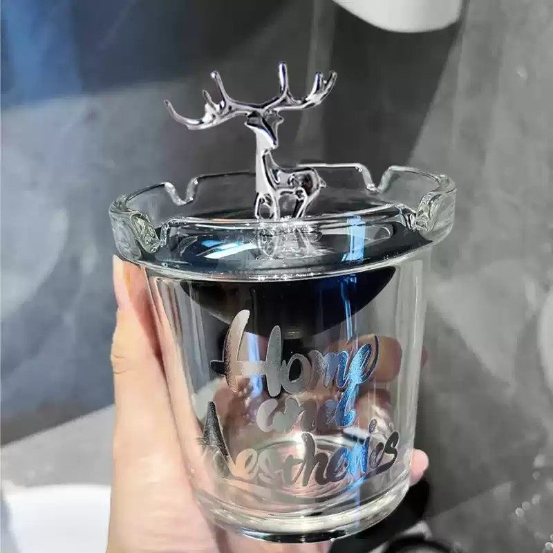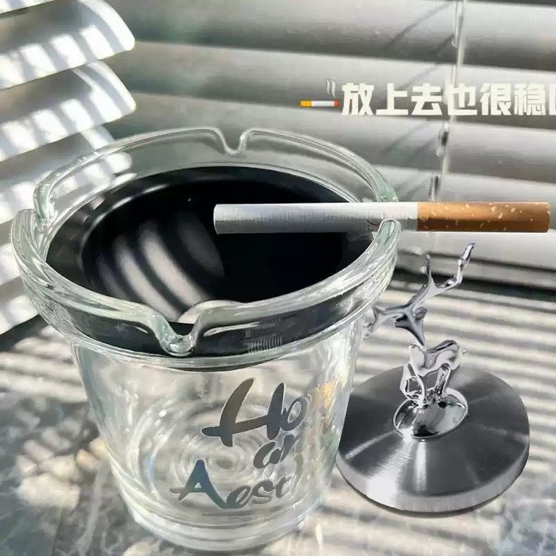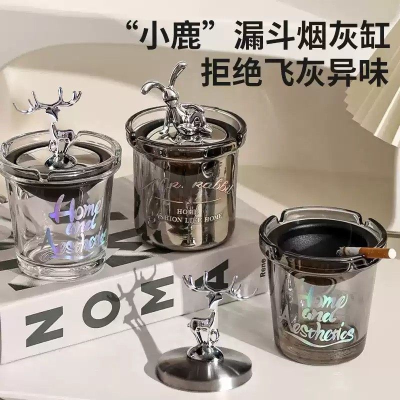 网红小熊烟灰缸有盖防飞灰家用客厅专用创意爆款时尚带盖玻璃漏斗