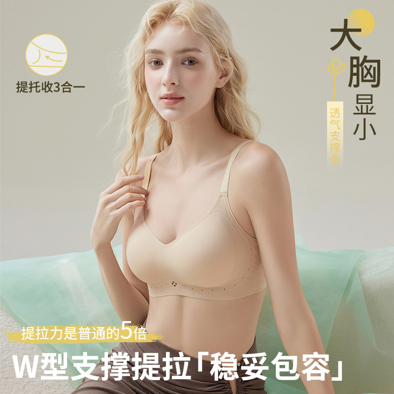 润微任意提内衣女大胸显小提拉收副乳防下垂无痕大码调整型文胸罩
