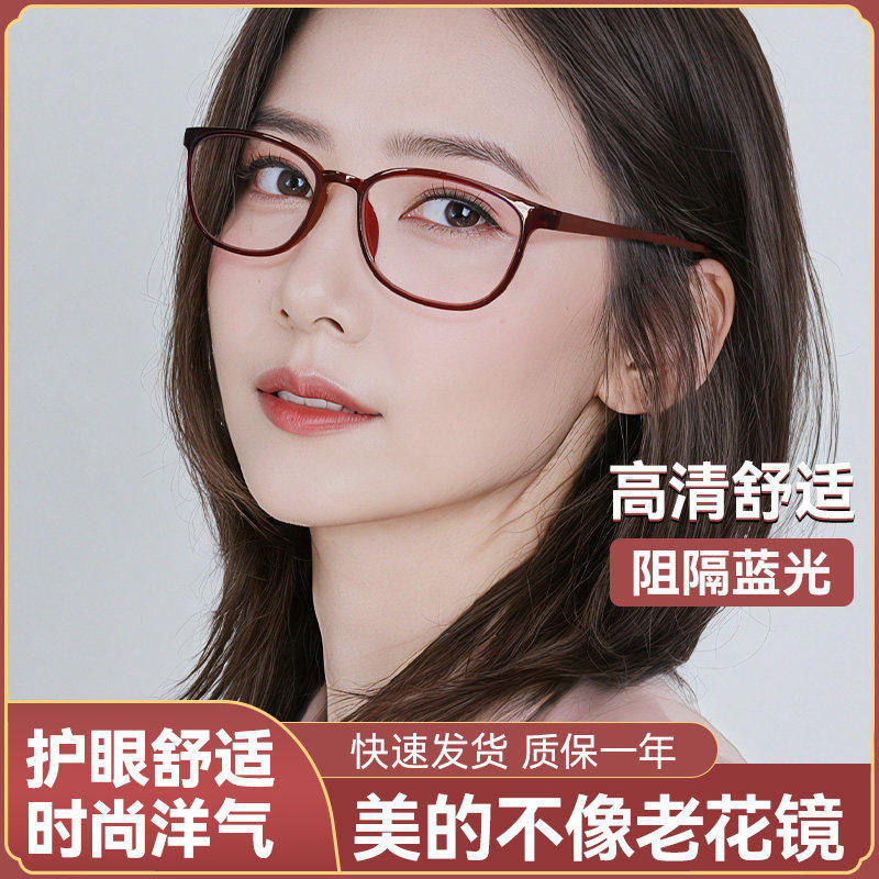 康视顿高清老花镜女超轻防蓝光高档中老年洋气老人眼镜时尚全框