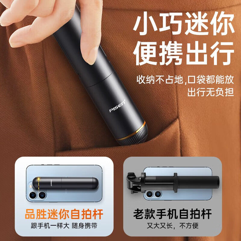 品胜小轻自拍杆迷你旅游便携2025新款通用手机自拍神器360度旋转落地三脚架手持mini蓝牙超轻自拍vlog拍照24