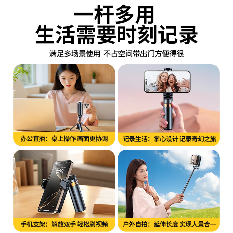 2025新款手机自拍杆超迷你三脚架手持稳定防抖助拍器拍照神器直播户外旅游演唱会拍摄支架远程蓝牙手柄便携