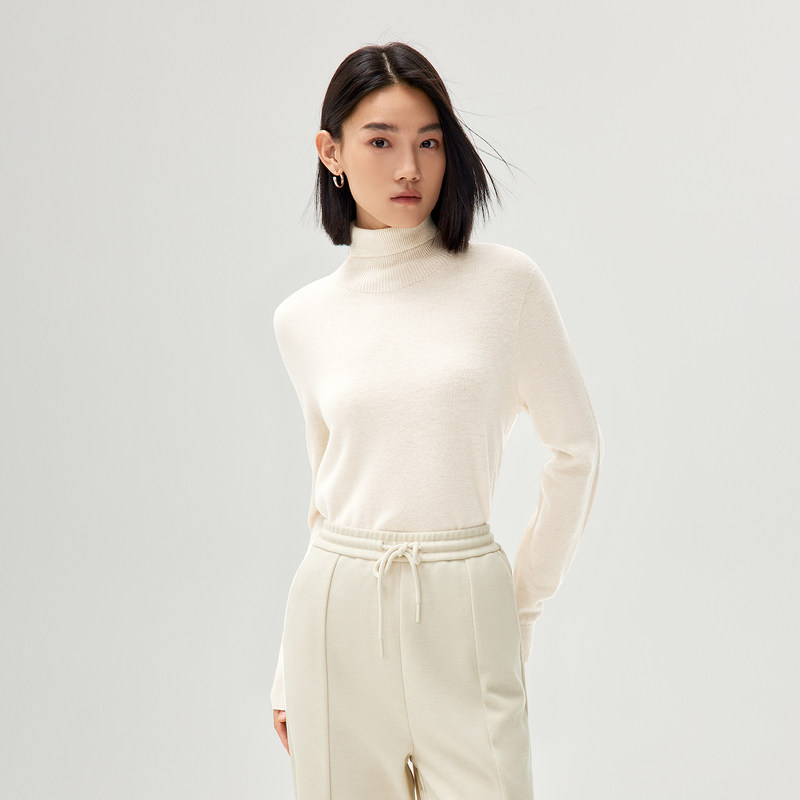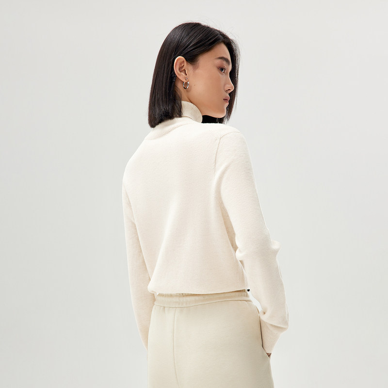 HLA/海澜之家纯羊毛针织衫秋冬新款纯色可翻高领套头毛衣女装