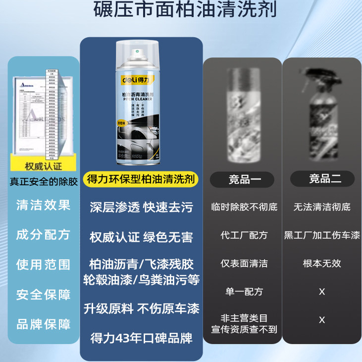 得力柏油清洗剂沥青强力白色汽车用清洁去除剂除胶漆面去污洗车液