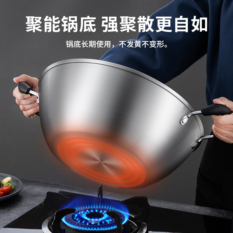 三四钢?不锈钢0涂层炒锅家用316L食品级加厚圆底炒菜锅官方正品